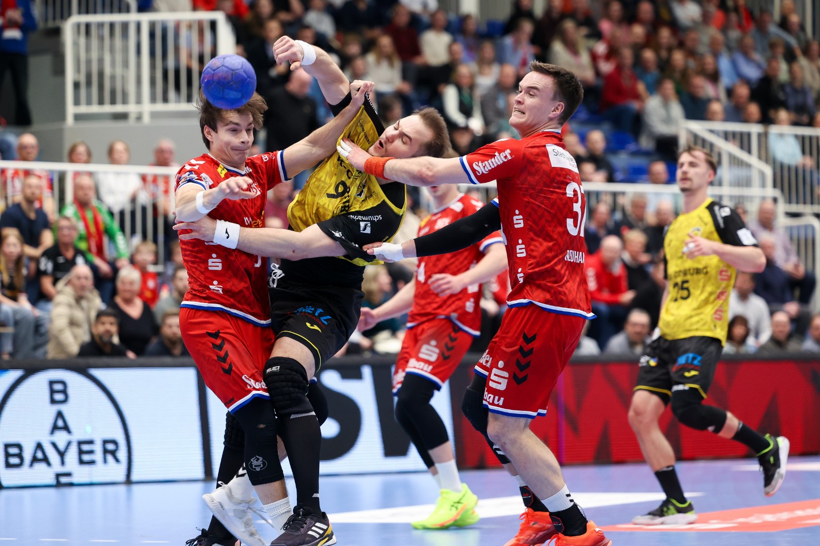 TuSEM, in der Krimi-Saison 2024/25 mit 30:38 Punkten am Ende Tabellen-Sechzehnter, wird weiterhin von Daniel Haase trainiert. Der 42-Jährige kam vor einem Jahr von den Rhein-Neckar Löwen, wo er Coach der Drittliga-Sieben war. Er passt angesichts seines Trainer-Vorlebens perfekt zur Essener Mannschaft, die im Schnitt nur etwas älter als 21 ist. Von den Jung-Löwen brachte der Coach den Halblinken Felix Göttler (heute 20) und Kreisläufer Valentin Clarius (jetzt 22) mit. Aus dem Löwen-Rudel wechselte nun der baumlange Kreisläufer Valentin Willner (20) zu TuSEM. In das Beuteschema passen die übrigen Neuzugänge: Torhüter Finn Knaack (19) kommt vom HSV Hamburg, die Halblinken Luis Buschhaus (21) von den SGSH Dragons und Tom Wolf (19) von MT Melsungen, Mittelmann Felix Mart (21) von den Füchsen Berlin. Eine gewisse Routine bringt Max Hejny (24) von der SG BBM Bietigheim mit, der Halbrechts daheim ist. Als Nachfolger von Denis Szczesny, der seine Karriere beendet hat, wurde Mittelmann Max Neuhaus (26) zum neuen TuSEM-Kapitän gewählt. Der „Traktor“ ackerte von 2019 bis 2023 für die Eulen und genießt bei den Eulen-Fans nach wie vor viele Sympathien. Bei TuSEM kommt ihm umso mehr Verantwortung zu, da Spielmacher Nils Homscheid (22), ein echter Junge aus dem Pott, wohl noch einige Zeit verletzt ausfällt. Ein Schlüssel zum Heimerfolg ist es nach Johannes Wohlrabs Einschätzung, Felix Göttler in Schach zu halten. Seine Wurfstärke ist gefürchtet.