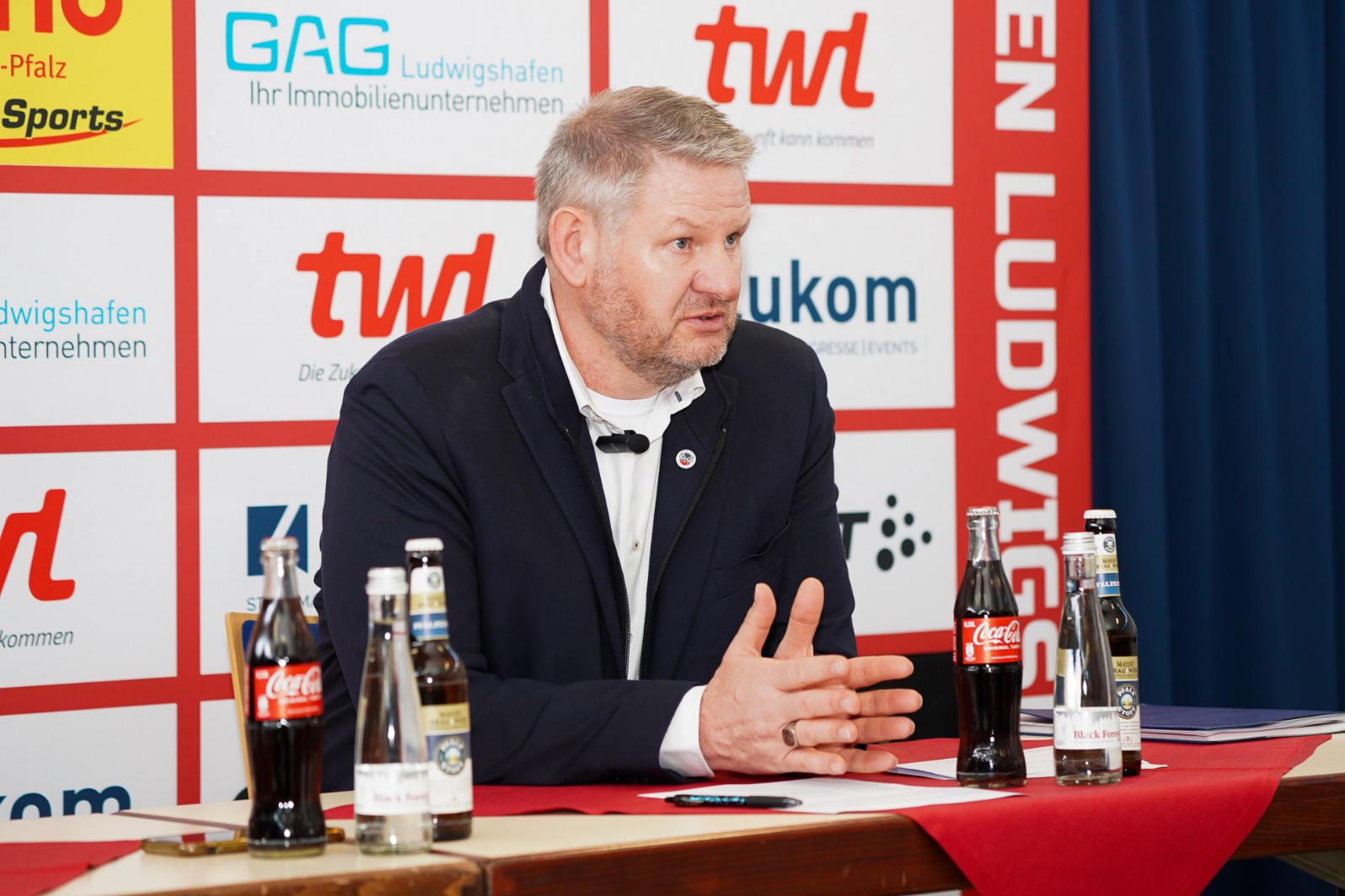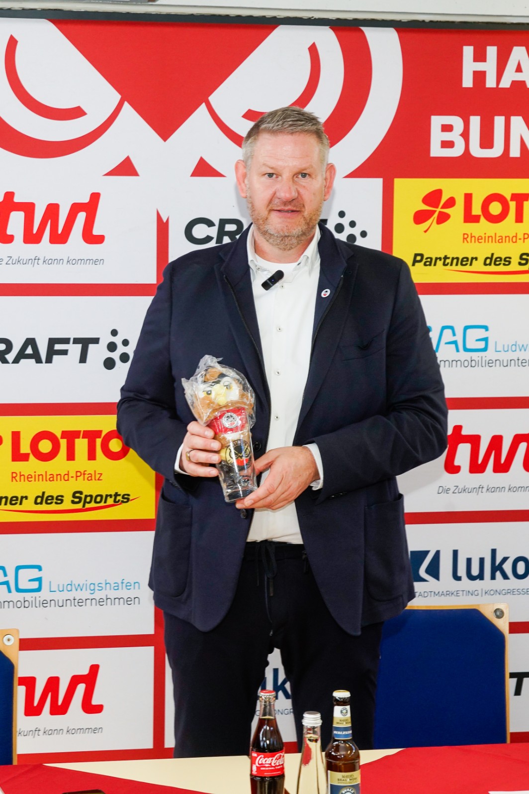Die Hallenproblematik habe er nach seiner Berufung bereits in einem „Vier-Augen-Gespräch“ mit Oberbürgermeister Professor Dr. Klaus Blettner erörtert, sagte Andreas Olbert, der in Maudach lebt und aufgewachsen ist. Olbert, 2,04 Meter groß, verheiratet, Vater zweier erwachsener Töchter, ist seit der Kommunalwahl 2024 ehrenamtlicher Ortsvorsteher in seinem geliebten Maudach. Er gehört seit 2017 der CDU an und ist seit 2024 Mitglied der CDU-Stadtratsfraktion. Probleme durch das Mandat sieht er nicht im Zusammenhang mit seiner Tätigkeit bei den Eulen. 2019 ist Olbert als Verkaufsleiter beim Rhein-Neckar-Fernsehen (RNF) ausgeschieden und hat seither als selbstständiger Unternehmer im Bereich Sponsoring und Akquise gearbeitet. Nach dem Abitur am Heinrich-Böll-Gymnasium und dem Grundwehrdienst bei der Bundeswehr studierte der Maudacher Medien- und Kommunikationswissenschaften sowie Politische Wissenschaften in Mannheim. Olbert ist Fan des 1.FC Kaiserslautern, pflegt Familie und seinen Garten als Hobbys. „Alles, was vom Grill kommt“, nennt der neue Geschäftsführer als Lieblingsessen. Die „gute Pfälzer Weinschorle“ dazu lässt sich nun ganz sicher aus dem Eulen-Dubbeglas, das ihm zum Einstand bei der PK verehrt wurde, besonders genießen. Wenn dazu noch Bon Jovi läuft …