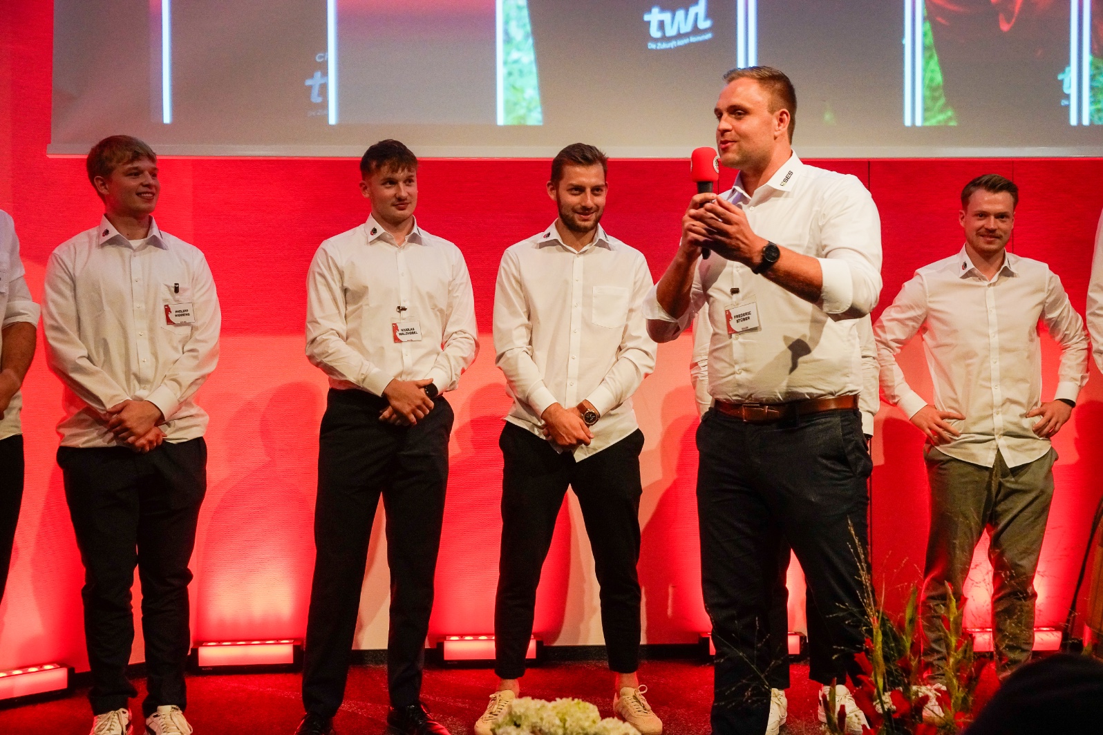 Schon während seinem Bachelor-Abschluss bei der BASF im Juli 2025 beschäftigte sich Freddy intensiv mit der eigenen Zukunftsplanung und einem bewussten Einstieg ins Berufsleben. Dieser erfolgte in der Unternehmenssteuerung beim Eulen-Partner, der Sparkasse Vorderpfalz. Freddy Stüber: „Die Möglichkeit mit der Sparkasse Vorderpfalz ist absolut fantastisch. Dass der Einstieg in einem so spannenden Arbeitsbereich wie dem Projektmanagement, in Kombination mit dem Profisport möglich war, ist herausragend. Ich arbeite in einem spannenden Themenfeld und habe dabei die maximale Flexibilität für den Handball. Ich empfehle jedem, sich mit den beruflichen Möglichkeiten bei der Sparkasse auseinanderzusetzen.“ Stüber ergänzt: „Ich konnte mir sehr gut vorstellen, parallel dazu weiterhin bei den Eulen professionell Handball zu spielen. Die Eulen sind ein toller Verein, zu dem ich eine hohe Identifikation habe. Nach den ersten Gesprächen mit den Verantwortlichen der Eulen ist allerdings früh klar geworden, dass es angesichts der wirtschaftlichen Entwicklungen im Verein schwierig werden würde. Die Vereinsverantwortlichen hatten ja schon öffentlich gemacht, künftig mit jungen Spielern und einem entsprechend reduzierten Etat arbeiten zu müssen.“