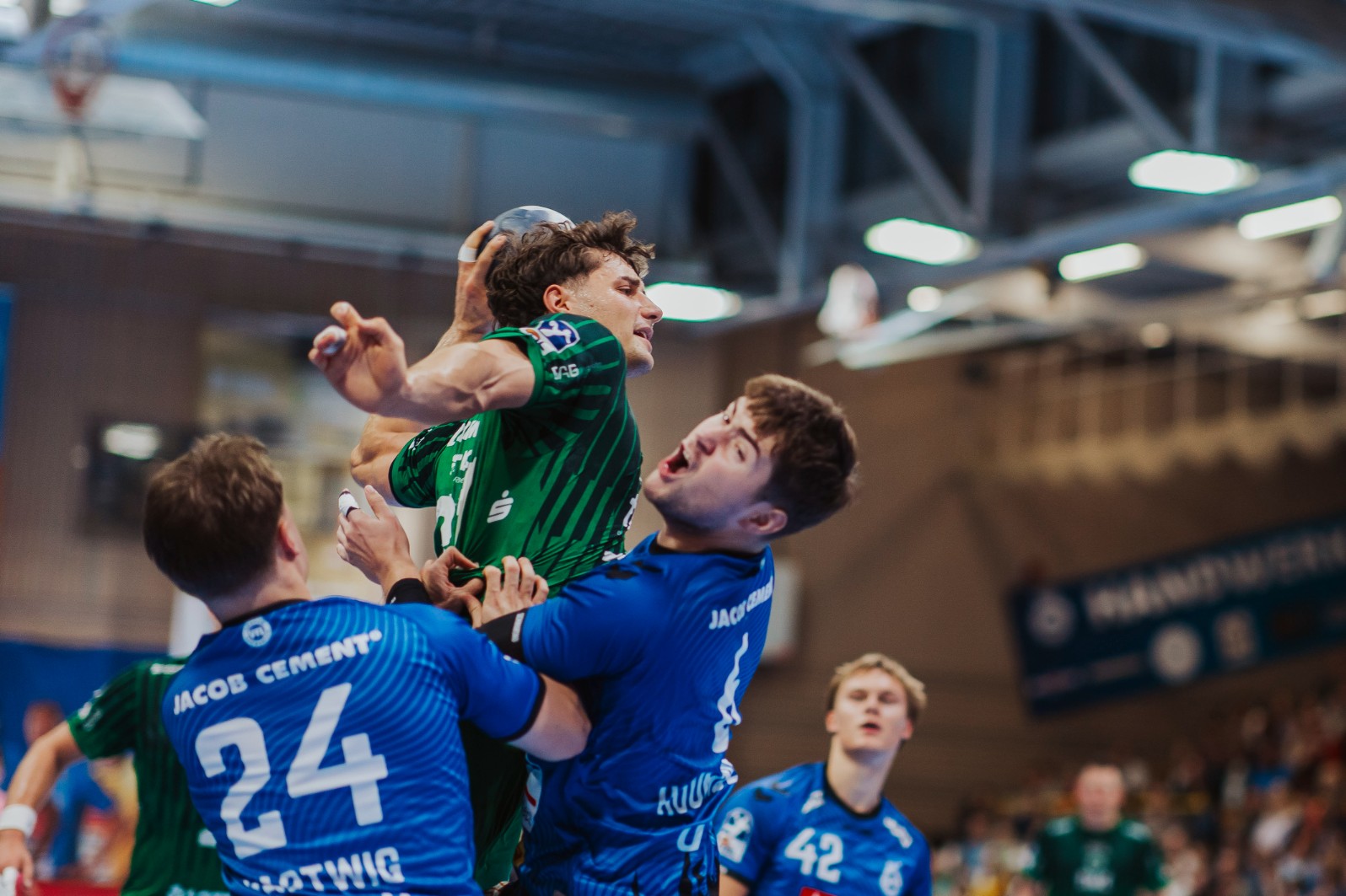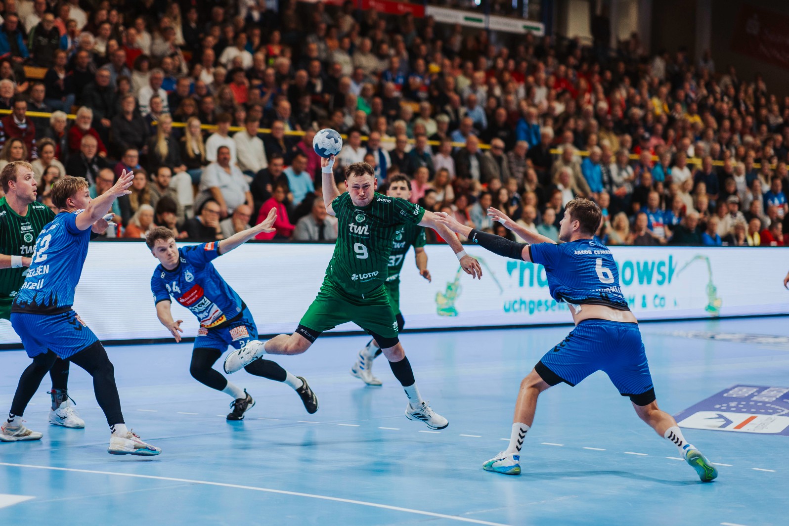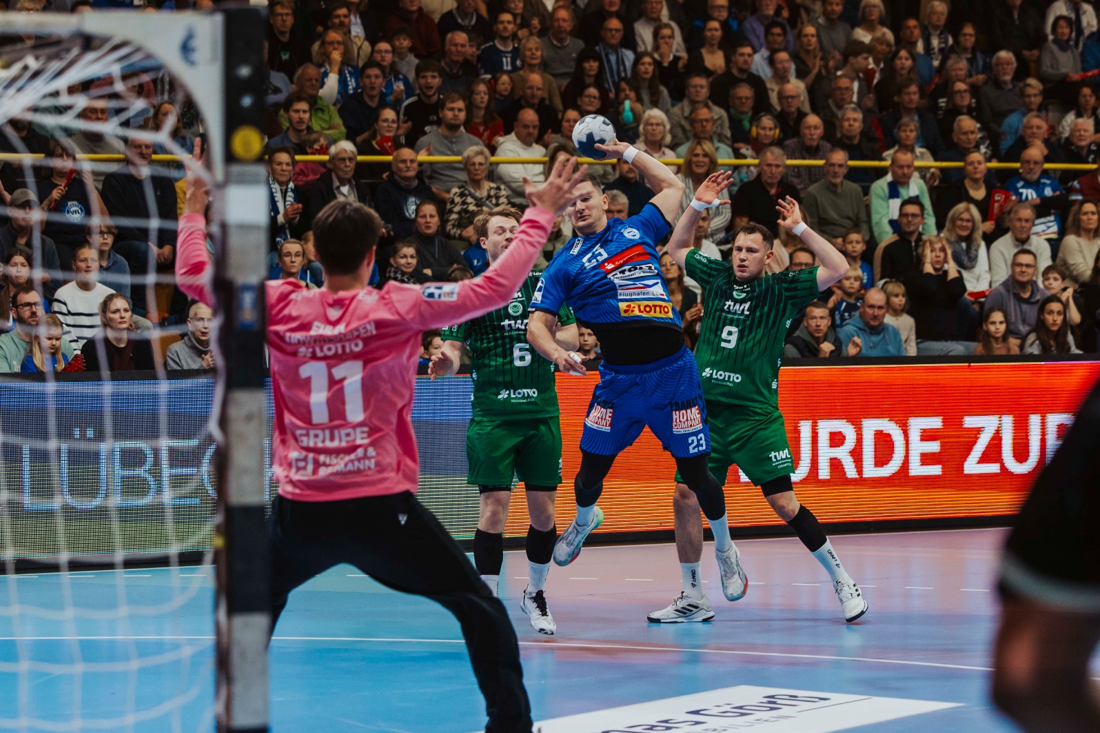 Traumstart für die Eulen. Sie führen nach 4 Minuten 3:0, nach Mats Grupes 6. Parade in der 11. Minute 6:1. Nach einer Viertelstunde sind sie mit 9:5 vorne. Dann aber kippt die Partie: Fehlwürfe, technische Fehler, Löcher im Abwehrverbund. Lübeck schafft mit einem 4:0-Lauf bis zur 20. Minute den 8:9-Anschluss, gleicht in der 23. Minute aus, geht in der 25. Minute durch Paul Holzhacker erstmals in Führung (12:11). Vergessen, dass er in der 9. Minute mit einem Siebenmeter an Grupe gescheitert ist. Tim Schaller, der zwei Siebenmeter in die Maschen setzt, scheitert in der 24. Minute beim Stand von 11:11 mit seinem Siebner an Nils Conrad, der kurzzeitig für Paul Dreyer zwischen die Pfosten rückt. Fehlwürfe, technische Fehler, Unzulänglichkeiten beim Versuch mit dem 7. Feldspieler den Turnaround zu schaffen – die Eulen liegen zur Pause 12:16 zurück.