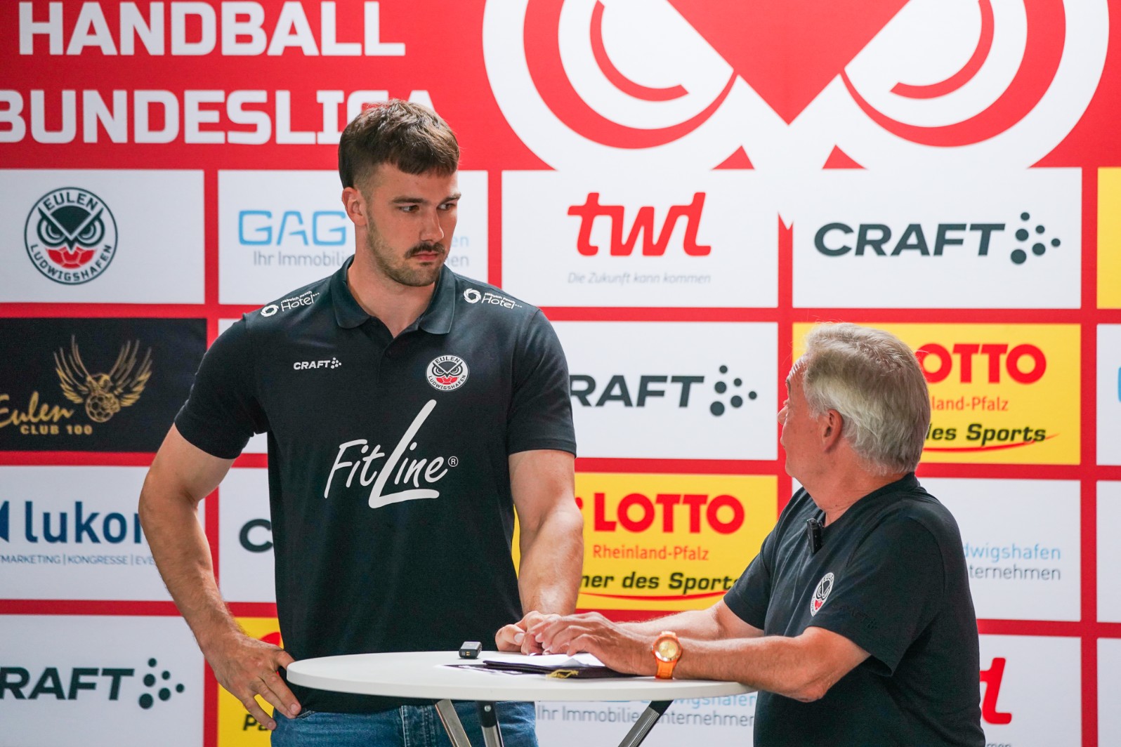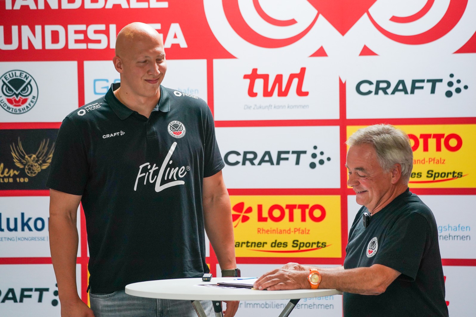 115 Kilo auf 2,04 Meter verteilt - Kreisläufer Lars Röller verkörpert eine Wand in der Abwehr und viel Wucht im Angriff. Der 26-Jährige ist mit der Nummer 23 mit Heimvorteil unterwegs: Er ist in Ludwigshafen geboren, in Mutterstadt aufgewachsen und spielte im Nachwuchs der Eulen. „Ich bin hier zuhause. Es ist natürlich cool, wieder hier zu sein“, sagt Röller. In den letzten eineinhalb Jahren sammelte er beim TV Großwallstadt Zweitliga-Erfahrung.