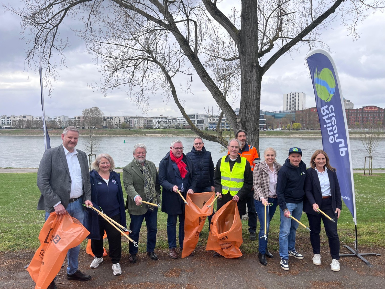 „Wir können nicht auf- oder absteigen, wir können nur sauber machen. Die Challenge macht Spaß“, sagte der Ludwigshafener Beigeordnete Alexander Thewalt, dankbar für die Unterstützung, die das Rhine Clean up durch die Vereine erfährt. Die Vermüllung – ein Problem auf beiden Rheinseiten, das die Kommunen viel Geld koste, um der Hinterlassenschaften von „Drecksäcken“ und „Dreckspatzen“ Herr zu werden, klagte Thewalt. Thorsten Riehle, der Mannheimer Bürgermeister für Wirtschaft, Arbeit, Soziales und Kultur, unterstrich, dass es wichtig sei, die Schattenseiten der Wohlstandsgesellschaft deutlich zu machen. Riehle: „Leider leben wir in einer Gesellschaft, wo es ohne Bestrafung nicht geht.“ Dass zu Adlern und Eulen nun die Mad Dogs als dritter aktiv beteiligter Verein dazu kommen sei ein positiver Impuls.