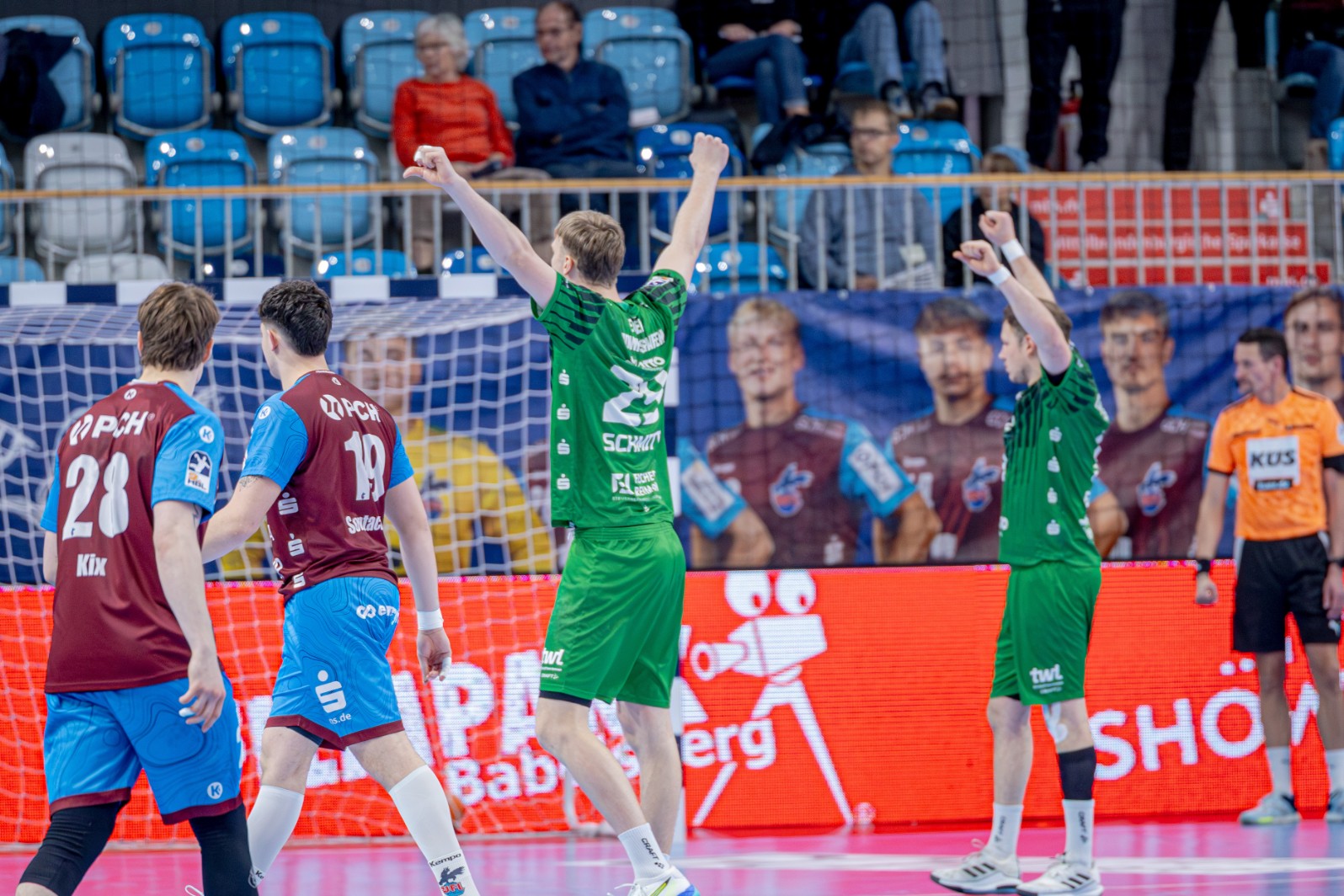 32:32 in Potsdam nach zwischenzeitlicher Sechs-Tore-Führung – da drängt sich die Frage auf: Punkt gewonnen oder doch Punkt verloren? „Ich glaube, dass wir damit sehr zufrieden sein dürfen“, wertet Trainer Haaß das Remis bei einer Spitzenmannschaft als Punktgewinn. „Ein gutes Spiel ist nur eine Momentaufnahme“, betont Haaß aber auch, der dringlichst weitere Fortschritte erarbeitet wissen möchte. Das Angriffsspiel seiner Mannschaft sah er in Potsdam durch Neuzugang Matteo Menges merklich bereichert: „Matteo hat es mit wenig Training sehr gut gemacht. Er hat Robin Eisel und Friedrich Schmitt, die durch unsere angespannte Personallage auf der letzten Rille liefen, entlastet.“ TuS Ferndorf hat auf Halblinks mit Daniel Hideg und Julius Meyer-Siebert zwei ehemalige Eulen-Profis unter Vertrag. Tom Jansen, halbrechts eine feste Größe, Nationalspieler der Niederlande, ist in Speyer geboren, spielte in der Jugend bei der TSG Haßloch und der TSG Friesenheim, im ersten Jahr als Aktiver beim TV Hochdorf. Dann ging er nach Schwetzingen und die große Handballwelt begann den Linkshänder zu entdecken. „Micha“ Haaß sieht „sehr viel Wurfgewalt“ bei den Ferndorfern: „Sie spielen einen sehr emotionalen Handball. Unsere erste Aufgabe ist, in der Halle zu bestehen.“