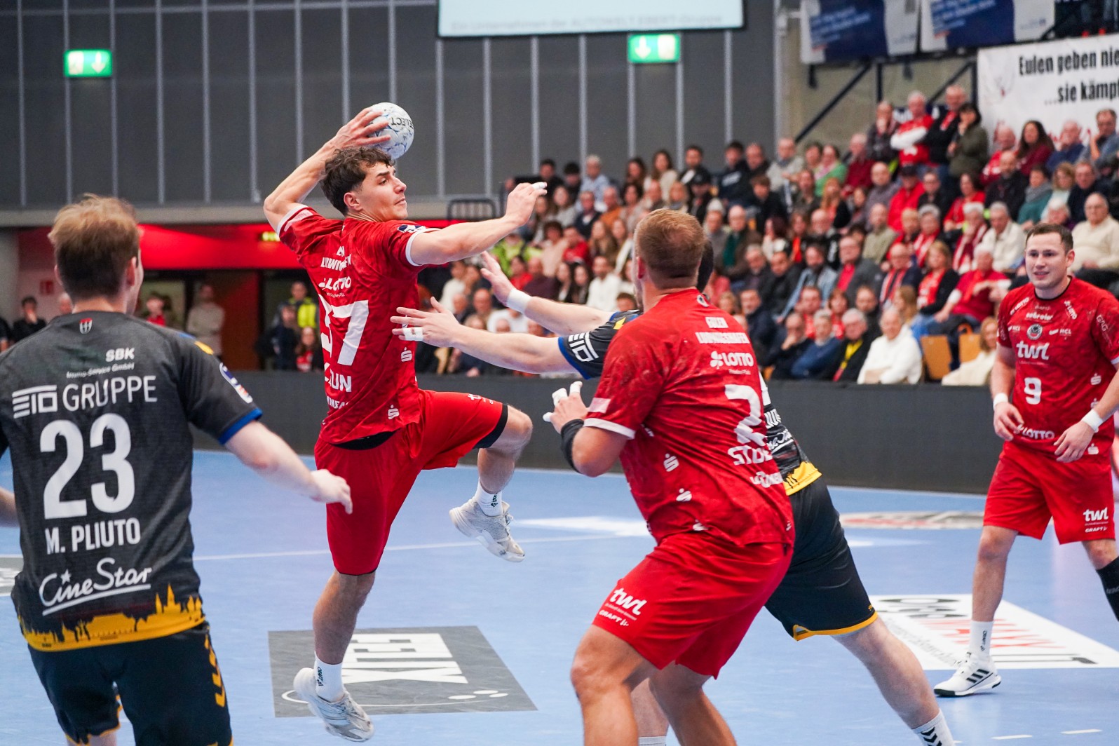 Marc-Robin Eisel, der seinen Vertrag bis 30. Juni 2026 verlängert hat, ist eine Triebfeder der Aufholjagd. Eisel kämpft. Eisel rackert. Eisel hat Ballgewinne. Und er trifft: 6 von 13. Er schafft es Freddy Stüber am Kreis - aus Eulen-Sicht allerdings zu spät - in Szene zu setzen. Genial in der 39. Minute das Rückhandzuspiel Eisels, das Stüber zum 15:18 nutzt. 4 von 4 verbucht der Kreisläufer! Eisel wäre der Held des Abends gewesen, hätte er eine Minute vor Schluss das 28:26 erzielt. Konstantin Poltrum aber hält – seine zwölfte Parade. Alexander Leindl nutzt die nächste Chance auf der Gegenseite: 27:27. 33 Sekunden bleiben. Den letzten Wurf nimmt sich Alex Falk – und scheitert. „Es war einfach ein ganz schlechtes Spiel“, gesteht der Rechtsaußen (3 von 5). Nach einem Solo von Sebastian Trost (4 von 9) und einem Pass von Tim Schaller begeistert Falk mit einem perfekten Kempa zum 19:22. Sie können’s doch! Eigentlich … „Es sollte nicht sein. Ich glaub‘ ich hab‘ viermal die Latte getroffen“, hadert Eisel, der verhinderte Held.