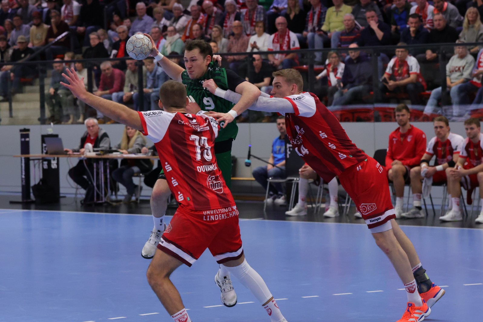 Nach 30 Minuten führte Ferndorf 16:15. Dabei sah es nach 21 Minuten ganz schlecht aus für die Eulen, sie waren mit 9:13 im Hintertreffen. Mit einem 3:0-Lauf arbeiteten sie sich bis zur 24. Minute wieder heran. Aber Ferndorf setzte ich ab, führte nach 27 Minuten 16:13. 12 Fehlwürfe und 5 Technische Fehler standen in der ersten Halbzeit auf der Negativstatistik der Mannschaft von Michael Haaß. Passend dazu: Tim Schaller, normalerweise eine Bank vom Siebenmeterstrich, vergab auch seinen zweiten Siebenmeter. Der erste landete neben dem Tor des starken Can Adanir, der zweite klatschte an den Pfosten. Die folgenden zwei Siebenmeter in der ersten Halbzeit nutzte Kian Schwarzer, verkürzte nervenstark bis zur Pause. Žiga Urbič hielt seine Farben mit fünf Paraden im Spiel. 15:16 nach 30 Minuten.