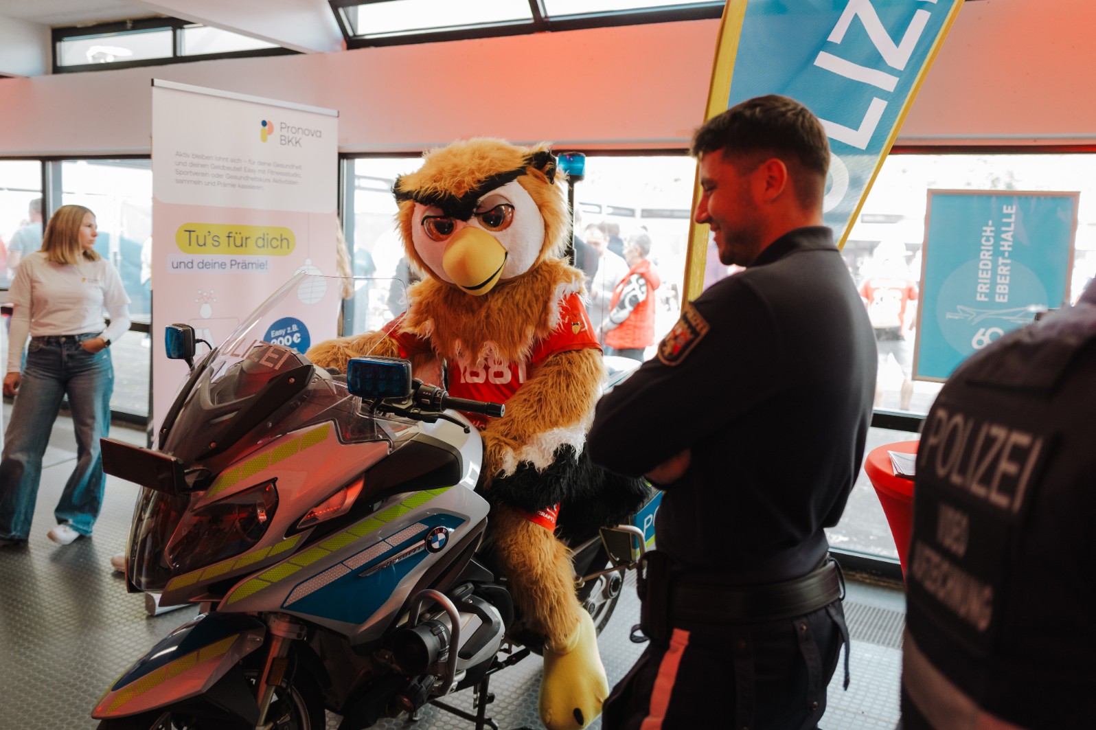 „Wir gemeinsam für LU!“ - unter diesem Motto engagieren sich die Polizeiinspektion Ludwigshafen 2 und die Eulen Ludwigshafen seit 2021 in gemeinsamen Aktionen für die Sicherheit der Bürger, beispielsweise mit der Aufklärungskampagne wie sich Senioren vor „Enkel-Tricks“ schützen können oder mit dem Aktionstag unter dem Leitmotiv „Rote Linien gegen häusliche Gewalt“.
