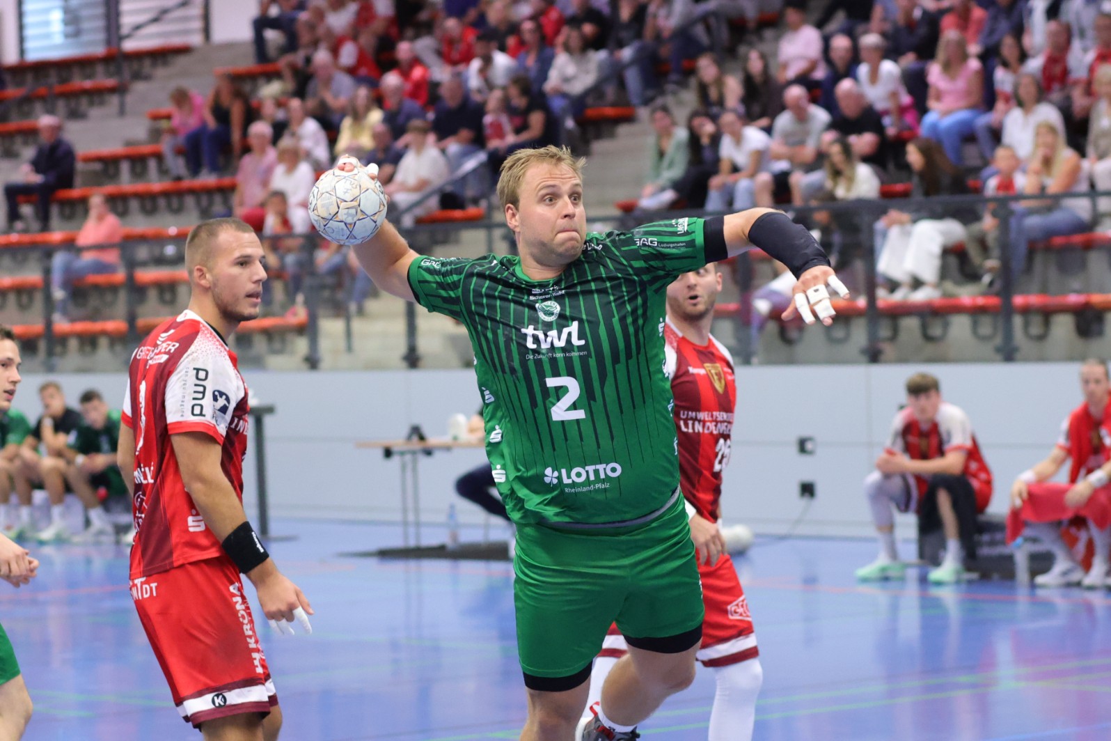 Spielfilm: 0:1 (1. Minute), 6:6 (10.), 7:6 (12.), 13:10 (26.), 14:12 (29.), 14:14 (Halbzeit), 18:22 (41.), 23:22 (48.), 23:24 (51.), 24:24 (51.), 29:24 (58.), 31:25 (Ende) - Siebenmeter: 3/3 - 6/5 - Zeitstrafen: 2/3 - Rote Karte: Stüber (46.) - Zuschauer: 400 - Schiedsrichter: Verheyen/Luis.