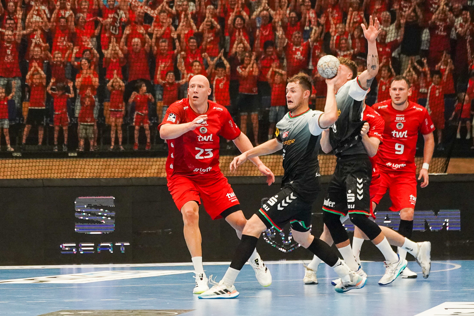 „Ein spannendes familiäres Duell“, sieht Eulen-Trainer Michael Haaß im Kreisläufer-Zweikampf zwischen Nils und Lars: „Hoffen wir, dass wir den Gewinner im Team haben …“