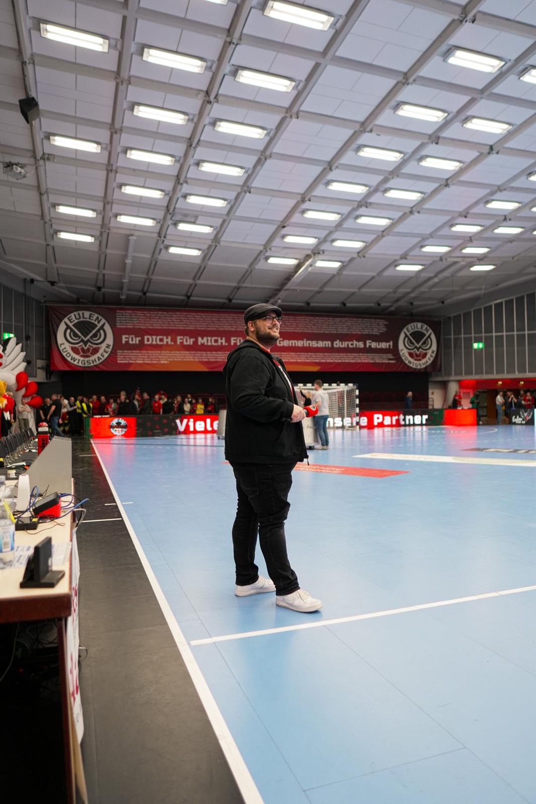 Ein Faktor für die Mannschaft der Eulen bei den Heimspielen sind die Fans. Ein ganz wichtiger Faktor war und ist auch Thomas Stüber, der Hallensprecher. Seine sensationelle Fähigkeit, die Halle sozusagen am Leben zu halten, auch wenn das Spiel in eine völlig verkehrte Richtung läuft, lobte jüngst Ex-Eulen-Trainer Ben Matschke in Folge 17 des Eulen-Podcasts „Hebt Se“ ausdrücklich. Auch beim jüngsten 24:35 (10:16) gegen den VfL Lübeck-Schwartau beeindruckte „Stübi“ eindrucksvoll – 60 Minuten Power. Beispiel die 41. Minute: Robin Eisel trifft zum 14:22. Von Verkürzen kann keine Rede sein. O-Ton Stüber: „Weiter, immer weiter! Egal wie es steht – wir stehen hinter unseren Jungs!“