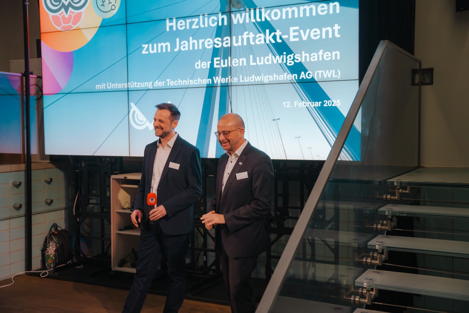 Über 100 Gäste aus dem Partnernetzwerk waren am Mittwochabend der Einladung der Eulen und dem Exklusivpartner TWL zum ersten Partnerevent 2025 gefolgt und kamen im Freischwimmer, dem ehemaligen Hallenbad Nord, von der TWL betrieben, in Ludwigshafen zum Austausch und Dialog zusammen.
