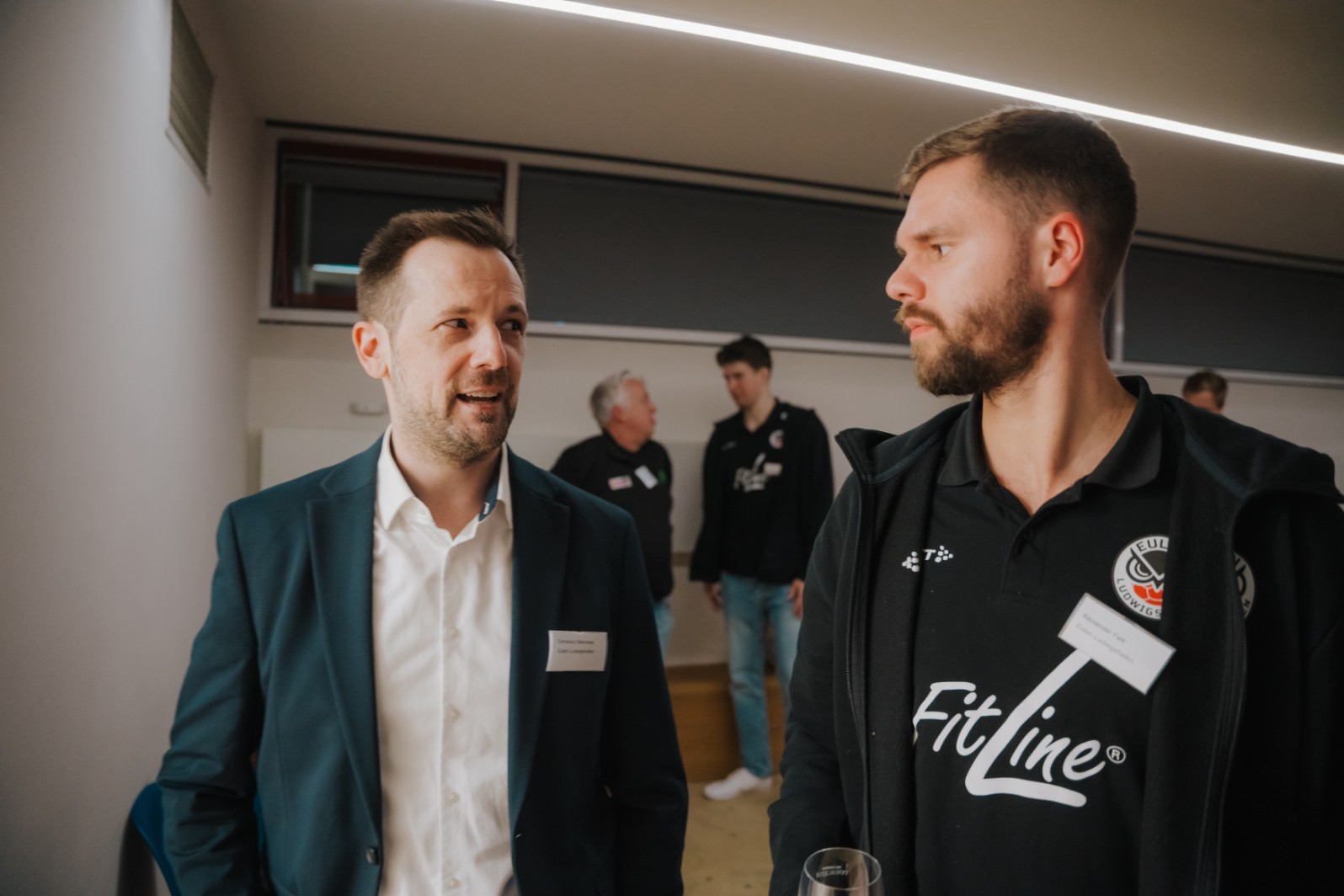 Der kaufmännische Vorstand der TWL, Dieter Feid, eröffnete den Abend und freute sich über die erfolgreiche Partnerschaft mit den Eulen, die über jetzt schon 19 Jahre gewachsen ist. Beide Seiten befinden sich im ständigen Austausch und profitieren so voneinander. So wusste er zu berichten, dass Max Haider als Werksstudent schon „TWL-Luft“ geschnuppert hat und der ehemalige Eulen-Kapitän Gunnar Dietrich noch heute im Controlling des Unternehmens arbeitet.