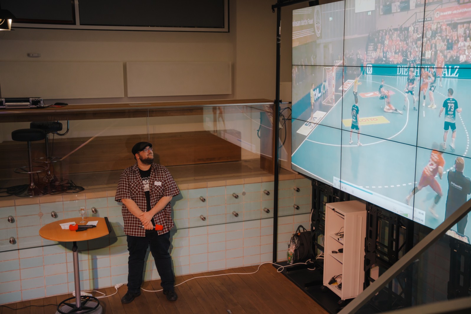 Noch bevor sich Domenico Marinese „offiziell“ vorstellen konnte, gab es für den neuen Eulen-Geschäftsführer die erste Bewährungsprobe. Moderator Thomas Stüber „forderte“ ihn und Dieter Feid zum Quiz heraus und stellte ihr Wissen rund um die Themen Handball und Energie auf die Probe. Beide wussten mit ihrem Wissen zu punkten und im Handball eher unüblich, einigte man sich am Ende auf ein gerechtes Unentschieden…