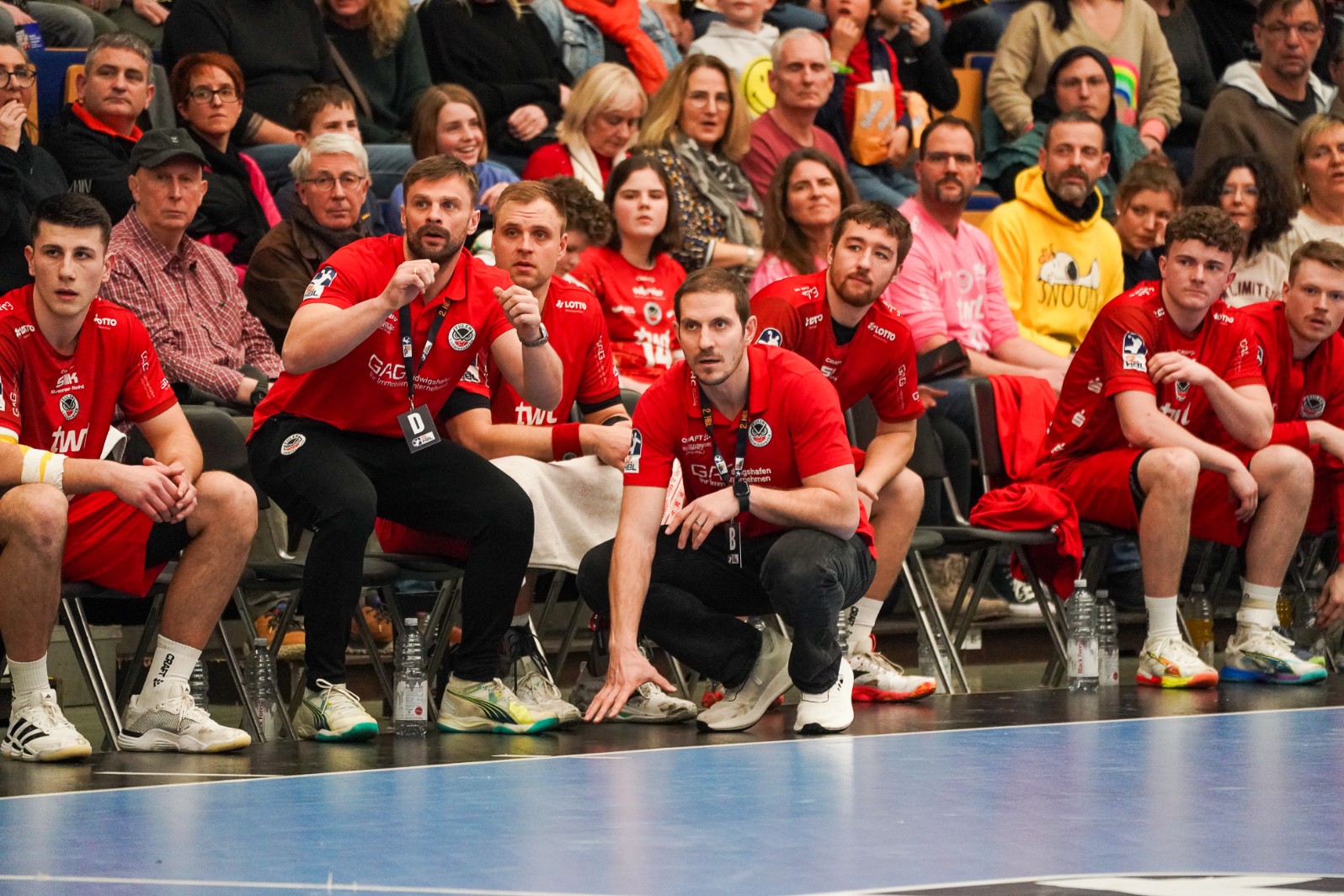 „Die Personalsituation wird sich kaum verbessern“, befürchtet Michael Haaß, der am Mittwoch beim 30:27 gegen Krefeld neben den beiden langzeitverletzten Vincent Bülow und Nici Waldvogel auch die Shooter René Zobel und Friedrich Schmitt ersetzen musste. „Wir versuchen unsere kleine Chance zu nutzen. Dafür müssen wie das gleiche Herz, die gleiche Leidenschaft wie gegen Krefeld auf die Platte bringen und sehen welche Fehler können wir abstellen“, sagt der Eulen-Coach. Der Sieg gegen Krefeld, der auf acht Punkte gesteigerte Abstand zum ersten Abstiegsplatz, „hat die Mannschaft auch ein bisschen befreit“, glaubt „Micha“ Haaß. „Junge Spieler wie Matteo Menges, der insgesamt ein gutes Spiel gegen Krefeld machte, dürfen auch Fehler machen. Wichtig ist, dass sie aus ihren Fehlern lernen. Das ist ein Entwicklungsprozess. Wir haben die nötige Geduld“, erklärt der Trainer der Eulen. Er wusste gegen Krefeld in Marc-Robin Eisel einen überragenden Antreiber auf dem Feld, der sich trotz einer Schulterverletzung in den Dienst der Mannschaft stellte, 58 Minuten spielte, nur für eine kurze „Bepflasterung“ bei Physio Rolf Bellmann draußen war. 8 von 10, dazu 4 Assists – ein imponierender Arbeitsnachweis. „Wie sich Robin durchbeißt, das ist auch eine Form von Qualität! Robin lebt den Verein. Er reißt die Mannschaft einfach mit“, lobt Haaß. Den starken Auftritt von Linkshänder Finn Leun (6 von 8), der alternativlos 60 Minuten durchackerte, würdigte der Trainer ebenfalls: „Finn musste, weil kein anderer da war. Er hat es sehr gut gemacht. Ich freue mich, wenn er sich ein bisschen freischwimmt.“