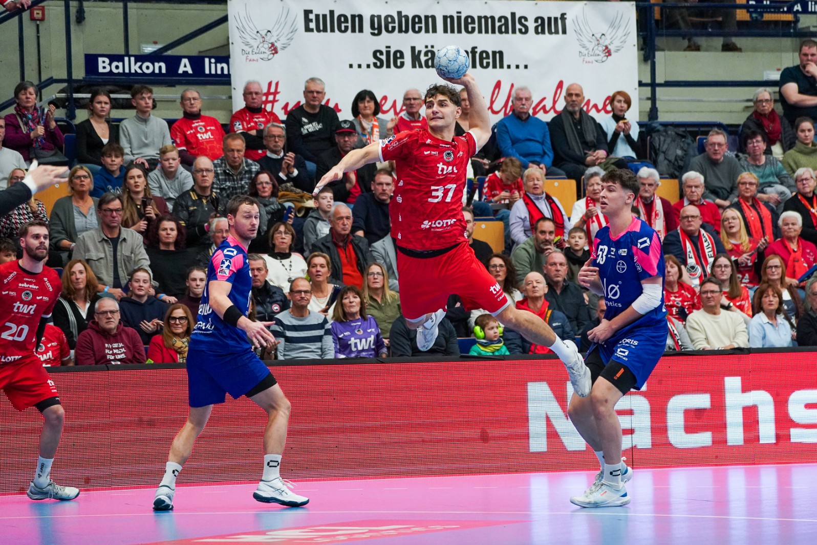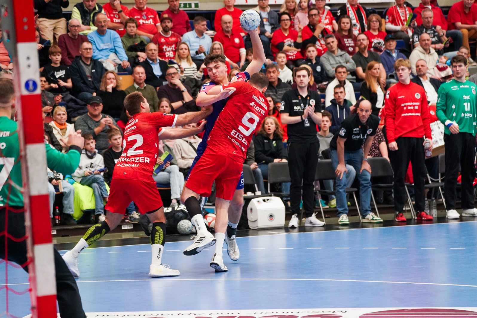 „Ein gewisser Druck ist angesichts der Lage ja nur logisch“, sagt Finn Leun. „Mit weniger Erfahrung als sie die älteren Spieler bei uns besitzen, ist das nochmal anders. Es ist schwer, da locker zu bleiben. Ich versuch‘ mir dann immer zu sagen, dass es nur Handball ist“, sagt der 22 Jahre alte Linkshänder. „Natürlich beschäftigt das einen, wenn man daran denkt, dass man im Abstiegsfall ohne Vertrag dastehen würde“, sagt der 2023 aus Leipzig gekommene Halbrechte. Nach dem Abschied von Jannek Klein letzten Sommer nach Potsdam ist Leun die Nummer eins auf halbrechts. Durch den vorzeitigen Abgang von Sadok Ben Romdhane ist der Mann mit der Nummer 37 in der Rückrunde besonders gefordert, bisweilen auch mal komplette 60 Minuten. „Wir regeln das aber mit unserer Belastungssteuerung. Außerdem muss ich sagen, dass ich mich zum Saisonende hin frischer fühle als anfangs“, sagt Leun, der Entlastung erfährt, wenn Theo Straub als Rechtsaußen wirkt und Alex Falk von Rechtsaußen auf halbrechts wechselt. Die jüngsten Erfolgserlebnisse gegen Hagen und Essen beflügeln, sagt Leun: „Wir haben daheim geliefert, aber seit Dessau kein Auswärtsspiel mehr gewonnen. Es wird Zeit … Nie war der Zeitpunkt besser als am Sonntag in Dormagen.“ Dass ein Fan-Bus rollt, freut den Ex-Leipziger natürlich. „Unsere Unterstützung in Coburg war brutal. Schon als wir nach dem Einlaufen in die Ecke, in unseren roten Block geschaut haben. Der Torjubel in fremder Halle, als Kian Schwarzer mit dem Tempogegenstoß getroffen hat, das war schon außergewöhnlich“, sagt Finn Leun. Er kam in 30 der bisher 32 Saisonspiele zum Einsatz, traf bei 175 Würfen 87-mal. Ratschläge für den Abstiegskampf erhält Finn auch aus der eigenen Familie: Sein Vater Dirk (61), Trainer-Dauerbrenner beim Buxtehuder SV, hat mit seinem Klub den Klassenerhalt in der Frauen-Bundesliga geschafft.