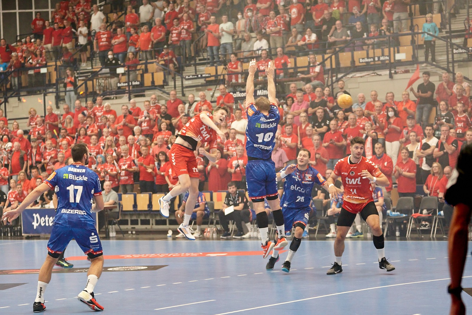 „Es wäre der Sieg der Mannschaft gewesen, wir haben aus der Not eine Tugend gemacht“, sagt Julius Meyer-Siebert, der fünf von zehn macht, trotz Trainingsrückstands gut spielte. So übernimmt der gelernte Mittelmann Max Neuhaus nach Haiders Feldverweis die Kreisläuferrolle, machte zwei Tore, verfehlt aber auch beim Stand von 17:15 das leere Tor. „Das war eine maximal unglückliche Niederlage“, hadert „Jule“ Meyer-Siebert, der Rückraum-Turm. „Wir nehmen die positiven Dinge mit“, sagt denn auch Eulen-Coach Michel Abt nach einem Abend, den die eigenen Fans mit einer wunderbaren Choreographie eröffnet hatten. Die Unterstützung von den Rängen war riesig. Dafür danken auch Trainer und Kapitän. „Das Spiel brachte die Entwicklung, die wir wollten“, bilanziert Abt, der mit seinen Eulen jetzt drei Auswärtsspiele vor der Brust hat. Das erste nächsten Samstag (19.30 Uhr) beim ThSV Eisenach. HBW-Coach Jens Bürkle ist nach dem Auftaktsieg natürlich glücklich: „Das hat mega Spaß gemacht. Die Atmosphäre war brutal, es war so hitzig … Ein Spiel, das Lust auf mehr macht. Vielen Dank für einen tollen Handball.“