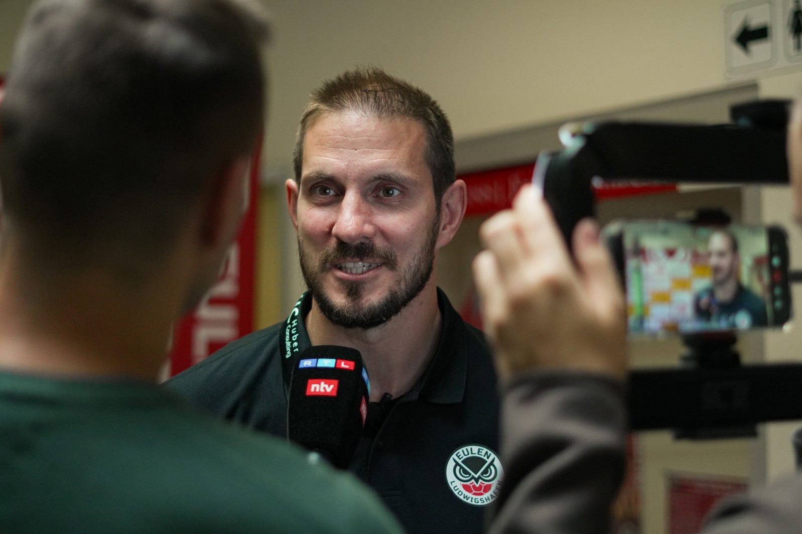 Die Eulen stellten den neuen Coach eine Stunde vor Trainingsbeginn in einer Pressekonferenz im Foyer der Günter-Braun-Halle vor. Das Medien-Echo spiegelt das große Interesse an den Eulen und an ihrem neuen Trainer wider. Drei TV-Teams (SWR, RON TV und RNF), zwei Hörfunksender (SWR und RPR1.) sowie die Vertreter von RHEINPFALZ, Mannheimer Morgen und Wochenblatt waren vor Ort, dazu kamen zwei Pressefotografen. „Ich bin froh, dass Michael zugesagt hat“, betonte der Sportliche Leiter Christian Deller in der PK. In den Gesprächen mit Haaß habe man schnell erkannt, dass er voll umfänglich das Anforderungsprofil der Eulen erfüllt. Deller ist zuversichtlich, dass es Haaß gelingt, die Mannschaft rasch wieder in die Spur zu bringen.