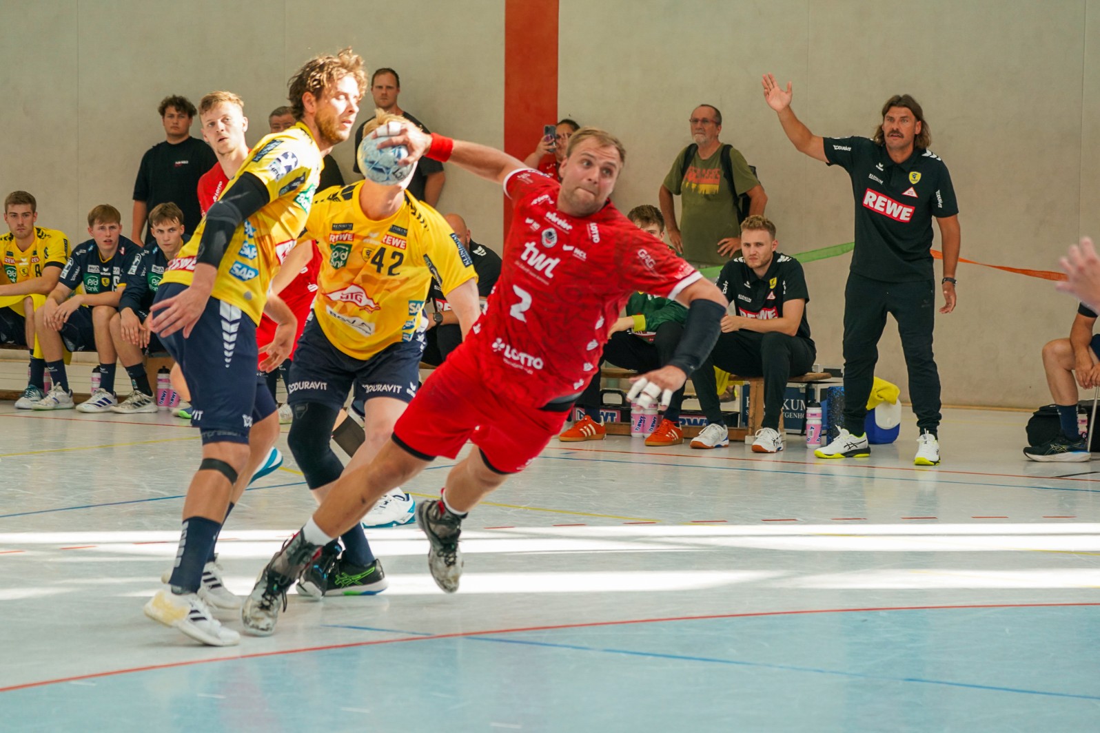 Den Torreigen eröffnete Mex Raguse in der 38. Sekunde – es blieb die einzige Führung der Eulen in einer angesichts der Bullenhitze äußerst strapaziösen Partie. Die Löwen bekamen die Partie schnell in Griff, überzeugten mit einer starken Abwehr vor dem guten Nachwuchstorhüter Dave Hörnig. Er vereitelte gekonnt Tempogegenstöße von Alexander Falk und Theo Straub. Nach dem 5:10 durch Kreisläufer Steven Plucnar Jacobsen kamen die Eulen noch einmal auf und auf 8:10 durch Sadok Romdhane und 9:11 durch Theo Straub, 10:12 durch Mihailo Ilic und 11:13 durch Sebastian Trost heran. Mit 5 von 7 hatte Sebi Trost großen Anteil, dass seine Farben zur Pause nur mit zwei Treffern im Hintertreffen waren. In der 25. Minute hatte Mats Grupe einen Siebenmeter seines früheren Mannschaftskameraden David Moré pariert.
