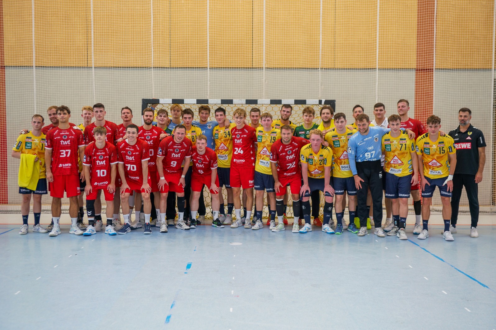 „Insgesamt bin ich sehr zufrieden“, bilanzierte Löwen-Coach Sebastian Hinze nach dem Benefizspiel mit Testspielcharakter, monierte nur eine Phase gegen Ende der ersten Halbzeit „als wir aus sechs Metern zu viel liegen gelassen haben“. Mit einem 8:0-Lauf zwischen der 36. und 44. Minute setzte sich der Bundesligist von 16:13 24:13 ab. „Zu viele technische Fehler“, kritisierte Eulen-Trainer Johannes Wohlrab, der auch zu viele freie vergeben Möglichkeiten seiner Mannschaft sah. Mit 17 Paraden zeichnete sich Jugend-Nationaltorhüter Dave Hörnig aus und unterstrich, warum ihm Experten eine große Karriere prognostizieren. Als Tilo Müller, 16 Jahre junger Jugend-Nationalspieler aus dem HLZ-Talentschuppen bei den Eulen ab der 52. Minute auf Rechtsaußen zum Einsatz kam, hatte Jonas Pleimes Hörnig im Löwen-Tor abgelöst. Linkshänder Müller bewies auch bei seinem zweiten Einsatz bei den Profis Coolness und Mut, nahm zwei Würfe und machte zwei Tore. „Zwei von zwei, das sagt alles“, lobte Joh Wohlrab. „Es hat Spaß gemacht. Aber es war ja nur ein Testspiel, also ein Spiel ohne große Nervenanspannung“, relativierte Tilo Müller bescheiden das Lob. Und strahlte …