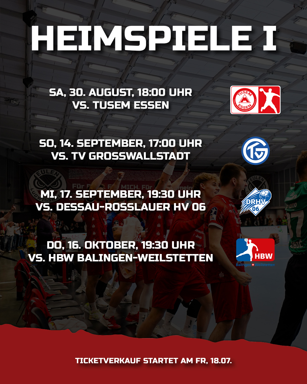 Knapp 800 Dauerkarten sind bislang verkauft, eine Reihe von Bestellungen ist noch in Bearbeitung, sagt Marcel Mayer. Der Leiter der Eulen-Geschäftsstelle kündigt überdies an, dass der Online-Ticketverkauf für die ersten drei Heimspiele der neuen Saison am Freitag, 10 Uhr, startet. Dabei handelt es sich um die Spiele gegen TuSEM Essen (Samstag, 30. August, 18.00 Uhr), TV Großwallstadt (Sonntag, 14. September, 17.00 Uhr), und den Dessau-Roßlauer HV 06 (Mittwoch, 17. September, 19.30 Uhr). Der traditionelle Eulen-Familientag wird beim Spiel gegen Großwallstadt gefeiert. Das populäre 1-Euro-Spiel ist noch nicht terminiert.