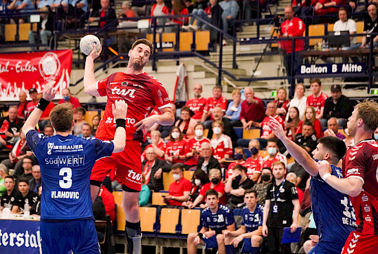 04.06.2022 10:20 // hkDie Eulen haben die dramatische Talfahrt gestoppt und am Freitagabend vor 1861 entfesselten Zuschauern mit einem 32:26 (18:13)-Sieg gegen HC Empor Rostock am vorletzten Spieltag den Klassenverbleib in der 2. Handball-Bundesliga geschafft. „Ich war von Anfang an zuversichtlich“, sagte Michel Abt, der in den zehn Tagen als Eulen-Trainer die Wende schaffte. „Es war kurz, aber du hast großen Anteil“, würdigte Geschäftsführerin Lisa Heßler die Arbeit des 31-Jährigen.