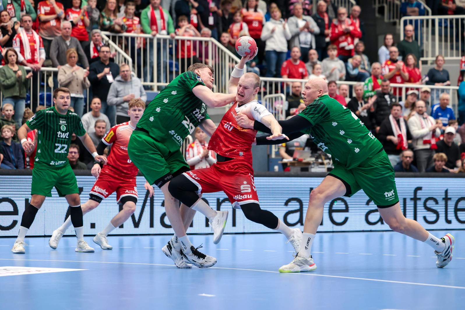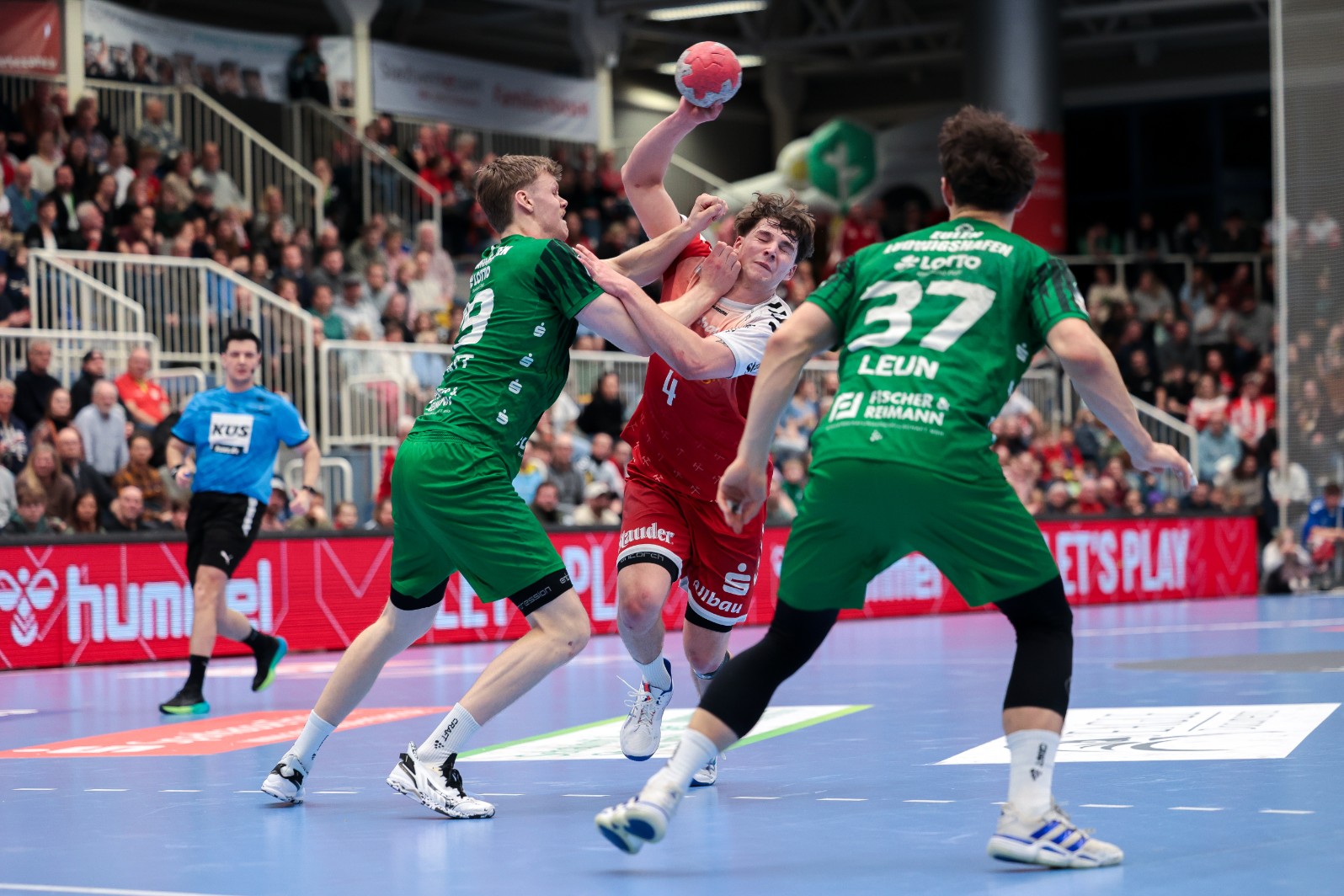 „René Zobel hat uns durch die zweite Halbzeit getragen und am Leben gehalten“, lobte Michael Haaß den Linkshänder (7 von 12). Beim Stand von 30:28 aber traf Zobel nur den Pfosten. Pech!
