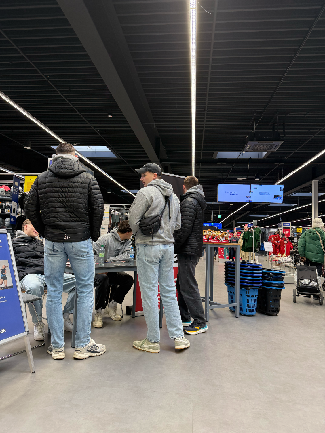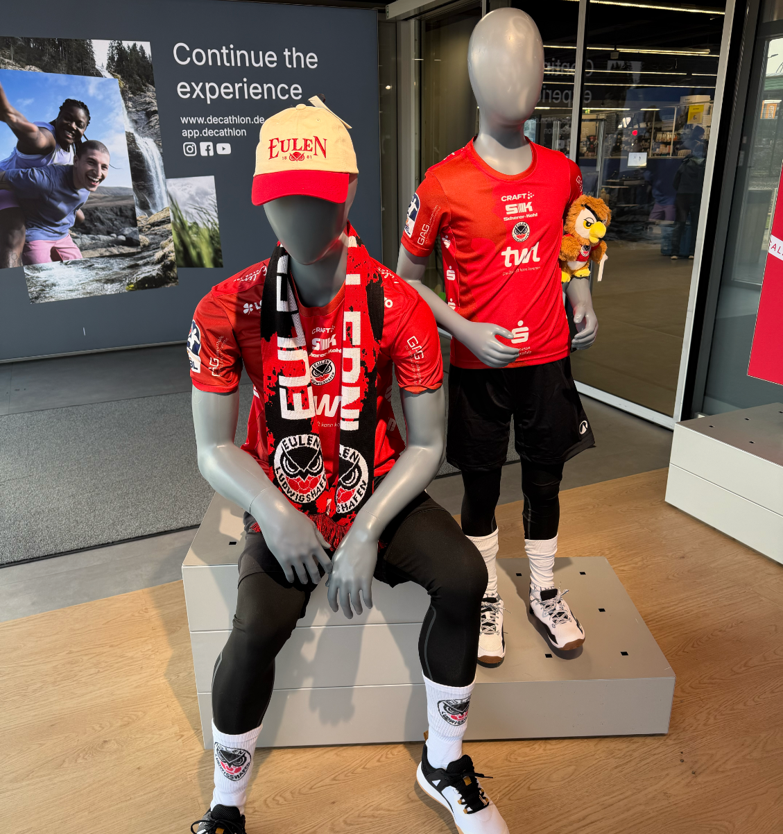 Sport, Spiel, Spannung am Samstag im proppenvollen Decathlon Store in der Ludwigshafener Oderstraße. Der Aktionstag mit den Handballern der Eulen kam sehr gut an. Die Eulen, mit fast komplettem Kader am Start, schrieben fleißig Autogramme, plauschten mit ihren Fans, standen am Glücksrad Pate und waren an der Torwand als „Balljungen“ gefragt. Einen guten Platz im Sporthaus gefunden haben die Eulen-Fanartikel und Eulen-Trikots, die nun dauerhaft dort angeboten werden, sagte Nina Semrau, die für Events bei Decathlon zuständig ist.