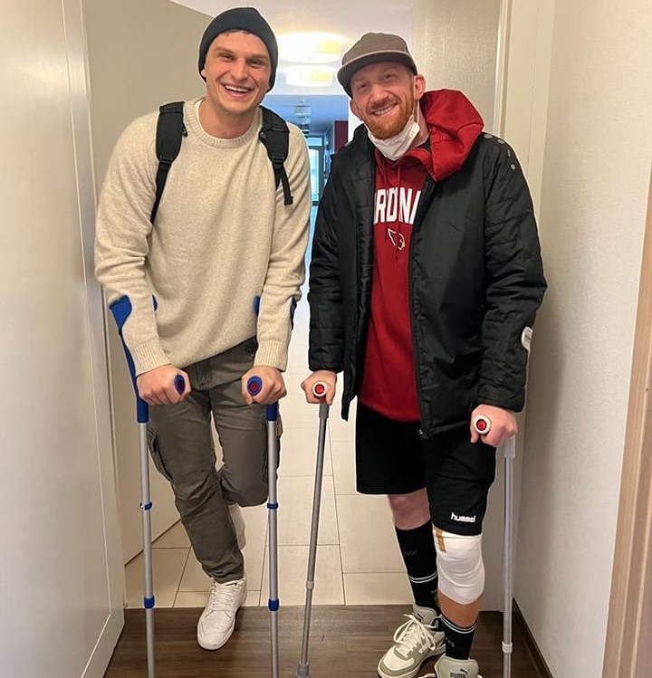 Eisenach hat als Tabellenzweiter 29:11 Punkte. Die Eulen, mit einem Spiel im Rückstand, sind nach zwei Niederlagen zum Jahresauftakt mit 24:14 Punkten Tabellensechster. Sergej Gorpishin, einer von drei Kreisläufern im Eulen-Kader, fällt wegen eines am Samstag in Minute 34 beim 27:34 in Balingen erlittenen Bänderrisses am linken Fuß auf unbestimmte Zeit aus. Gorpishin war zuletzt auch offensiv „gut drauf“, machte beim 30:35 in Dessau fünf von fünf, in Balingen traf er bei fünf Würfen viermal. „Ich hatte noch Glück im Unglück, drei Bänder sind gerissen, eins ganz, eins halb, eins angerissen. Aber zum Glück hat das Syndesmose Band gehalten, sonst wäre die Saison für mich vorbei gewesen“, schildert Gorpishin. „Ich kann noch keine Prognose abgeben, wann ich wieder spielen kann. Ich will aber alles dafür tun, der Mannschaft schnell wieder helfen zu können, unsere Ziele zu erreichen. Der Fuß ist erstmal ruhiggestellt worden, ich fange jetzt wieder an ihn zu bewegen und zu belasten“, erläutert der 25-Jährige. Er wird in der Praxis von Eulen-Physiotherapeut Christian Simon in Ludwigshafen behandelt und fühlt sich dort auch bestens aufgehoben. Gorpishin: „Sie geben sich alle viel Mühe.“ Einer der „Medizinmänner“ dort ist Michael Sahm. Der kann ausnahmsweise nicht helfen – Michael Sahm wurde am Meniskus operiert.