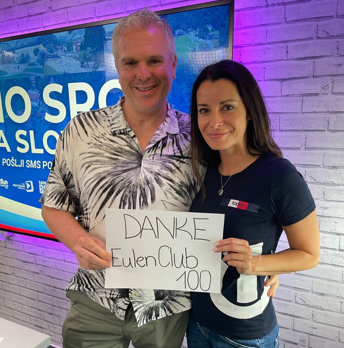 „Danke Eulen Club 100“, sagt Žiga Urbič, der slowenische Torhüter des Handball-Zweit-Bundesligisten Eulen Ludwigshafen. Der Eulen Club 100 und der Förderverein Flügelverleiher haben 1500 Euro zur Unterstützung der Opfer der Hochwasserkatastrophe in Slowenien gespendet. Urbič und sein Vater haben die Summe um 500 Euro erhöht. Die 2000 Euro gehen in den Spendentopf des slowenischen Radiosenders „Radio 1“, der binnen zwölf Stunden 1.914.786,89 Euro einsammelte. „Mein Vater und ich haben entschieden, dass wir die 2000 Euro an ,Radio 1‘ weiterleiten, weil wir wissen, dass das Geld dann an der richtigen Stelle eingesetzt wird“, erklärt Urbič. Jana und Micha, Moderatorin und Moderator bei Radio 1“ (unser Bild), posteten inzwischen auch ein Foto mit einem Gruß nach Ludwigshafen: DANKE Eulen Club 100.