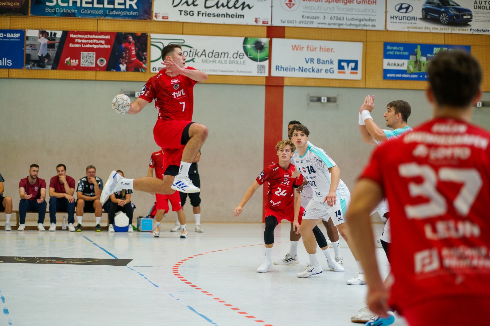 Die Eulen starten ohne den verletzten Alexander Falk verheißungsvoll gegen den Bundesliga-Absteiger und führen nach drei Minuten 3:1. Herausragend im Innenblock in der Anfangsphase: Mihailo Ilic. Doch der Titelfavorit aus dem Schwäbischen nutzt fast jede Schwäche oder vergebene Torchance der Gastgeber und dreht die Partie: 5:6 (10.), 7:10 (13.), 8:12 (16.). Doch die Eulen kämpfen sich zurück, kommen in der 23. Minute durch Finn Leun auf 12:13 heran. Der Mann der ersten 30 Minuten aber heißt Žiga Urbič, für den zwölf Paraden gelistet sind. Er meistert gleich drei Siebenmeter von Tom Wolf (2) und Max Prantner. So sind die Eulen zur Pause nur mit drei Toren im Hintertreffen: 13:16.