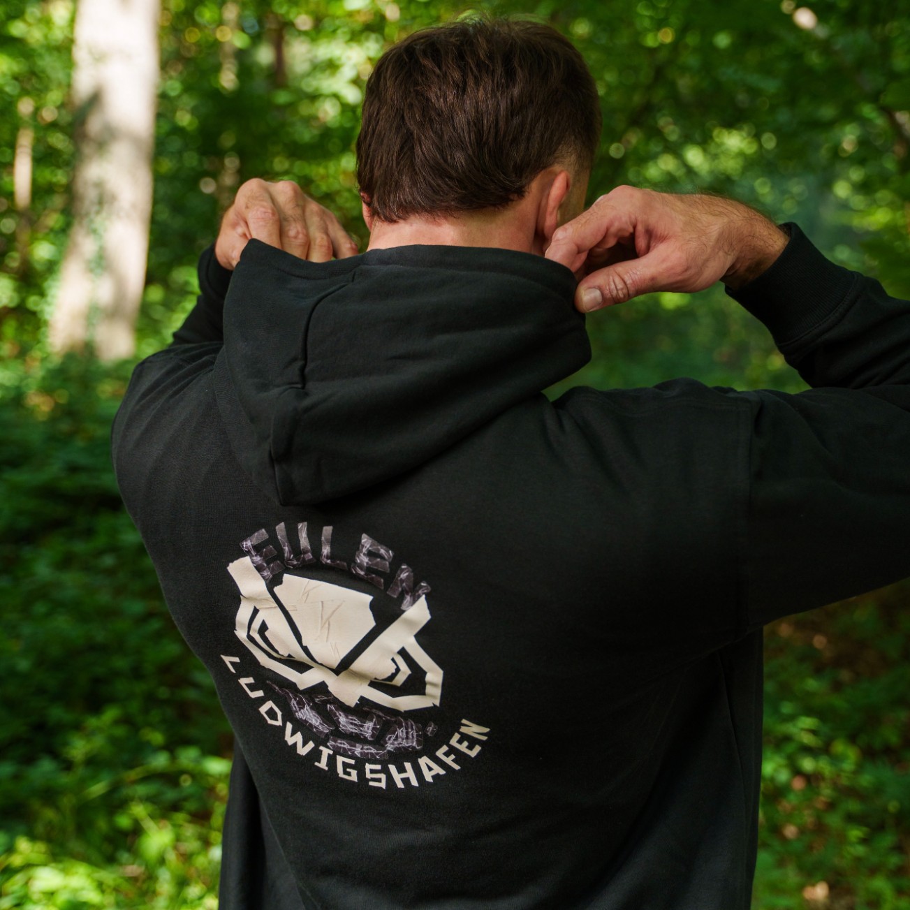 Was passt besser zu Handball als Tape?! Zeige deine Leidenschaft für den Handball und deinen Stolz auf die Eulen Ludwigshafen mit unserem stylischen schwarzen ZIP-Hoodie!
